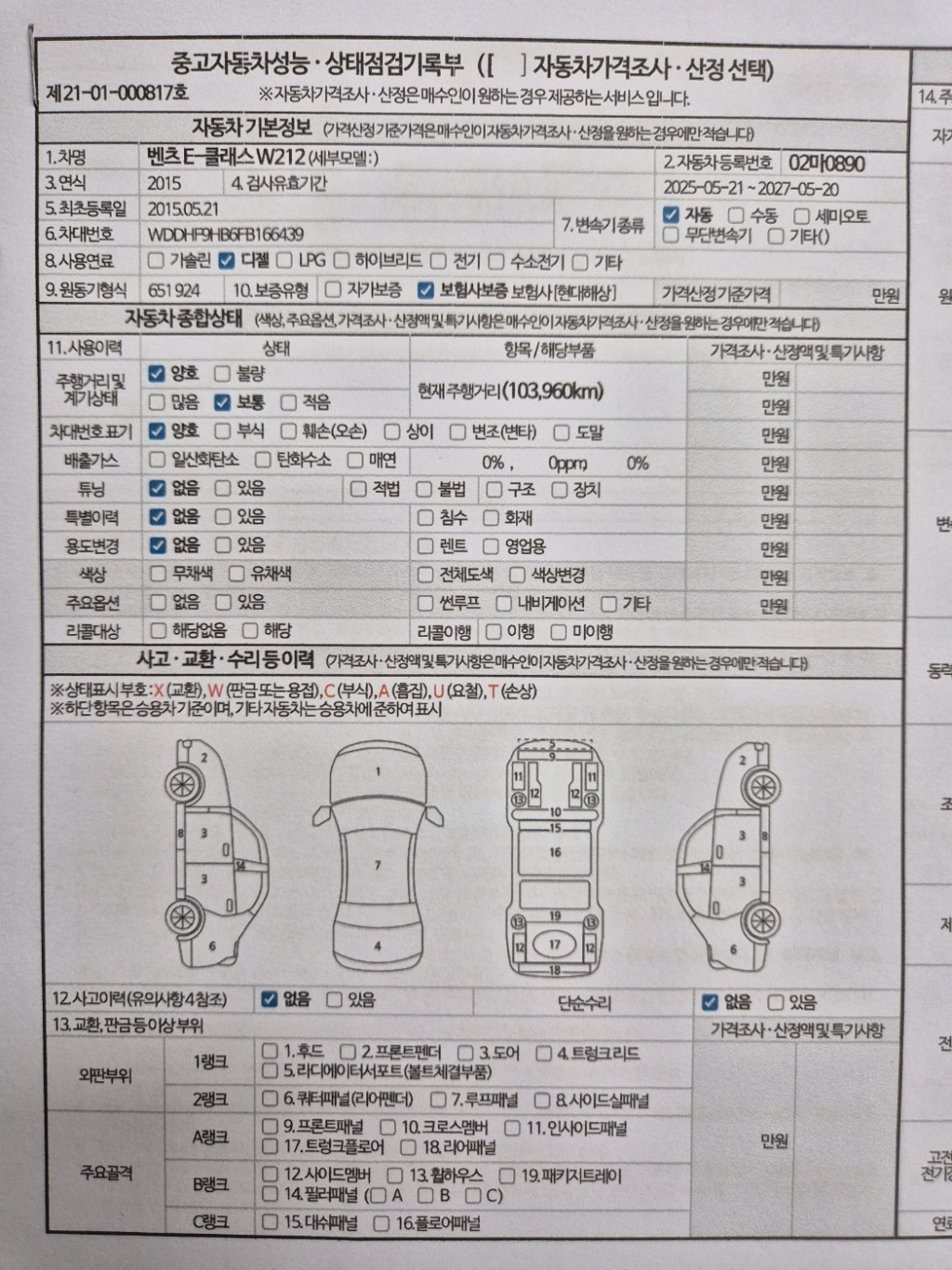 외판부위 | ○ 후드 ○ 프론트 휀더 ○ 도어 ○ 트렁크리드 | ||